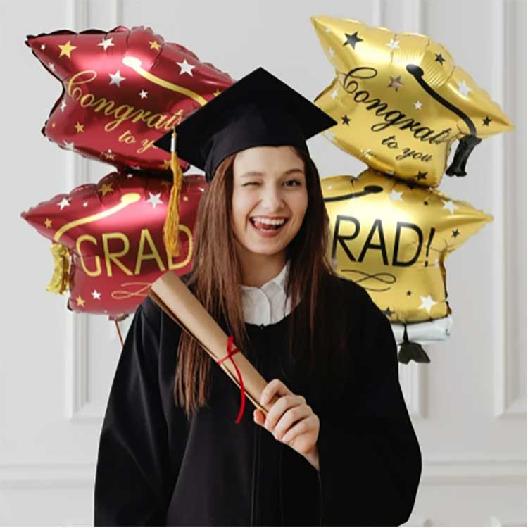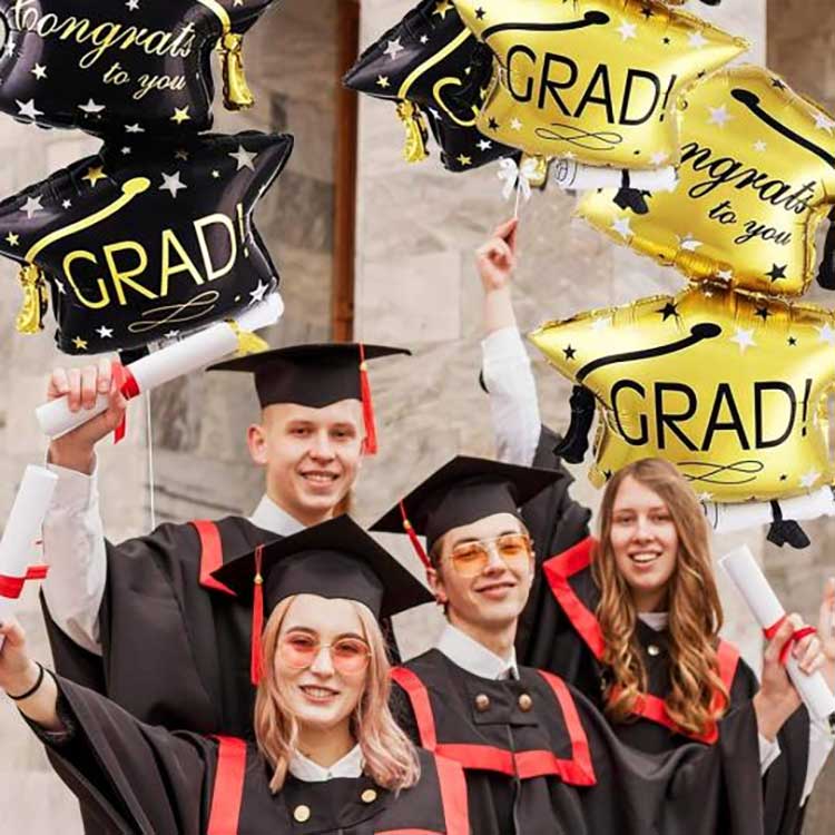 Овај сет балона за матуру доступан је у три боје, црној и златној, како бисте додали дашак гламура вашој матури. Златни балони за дипломирање дају додатну празничну ноту.