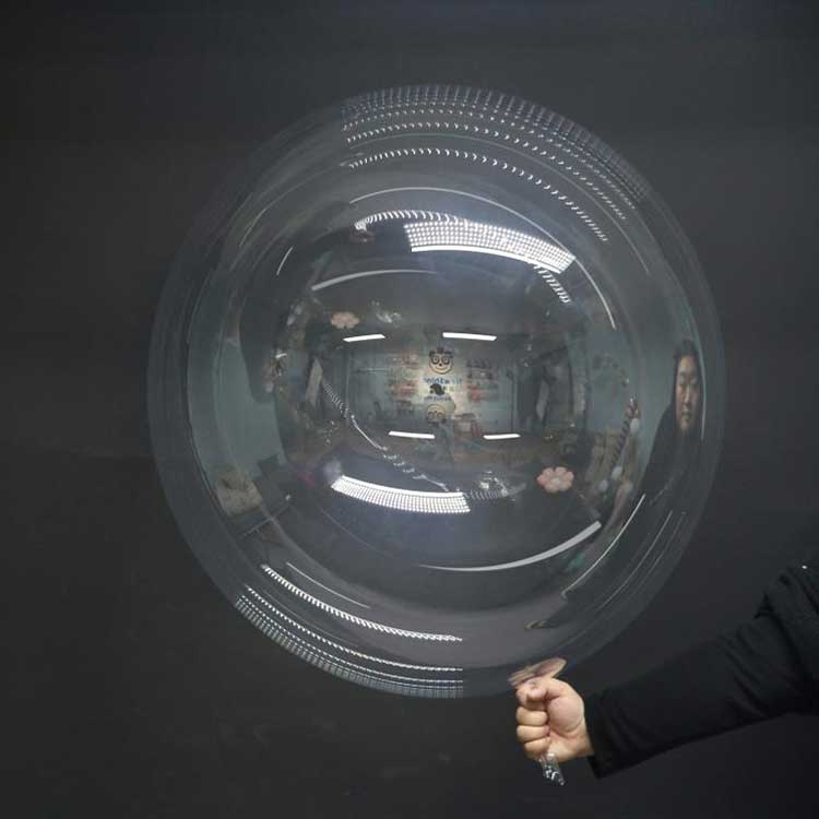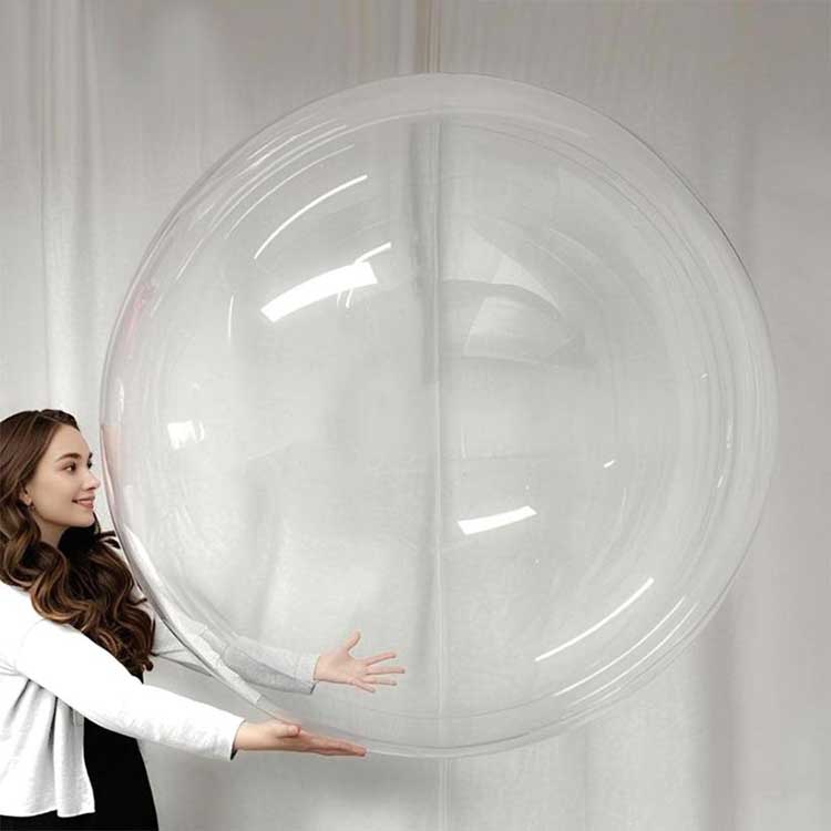 Округли прозирни Бобо балони од 48 инча могу се прилагодити различитим окружењима. Када су упарени са 10 ЛЕД светлосних жица и напуњени хелијумом, могу да створе светлосни ефекат. Ови балони се могу користити за комерцијалне изложбе како би се постигао прецизан маркетинг; могу се користити и за попуњавање дечијих забава шареним пеном или латицама перја. на недавном венчању, 100 направљених по наруџбини од 48 инча округлих провидних балона са мехурићима коришћено је и добило високе похвале.