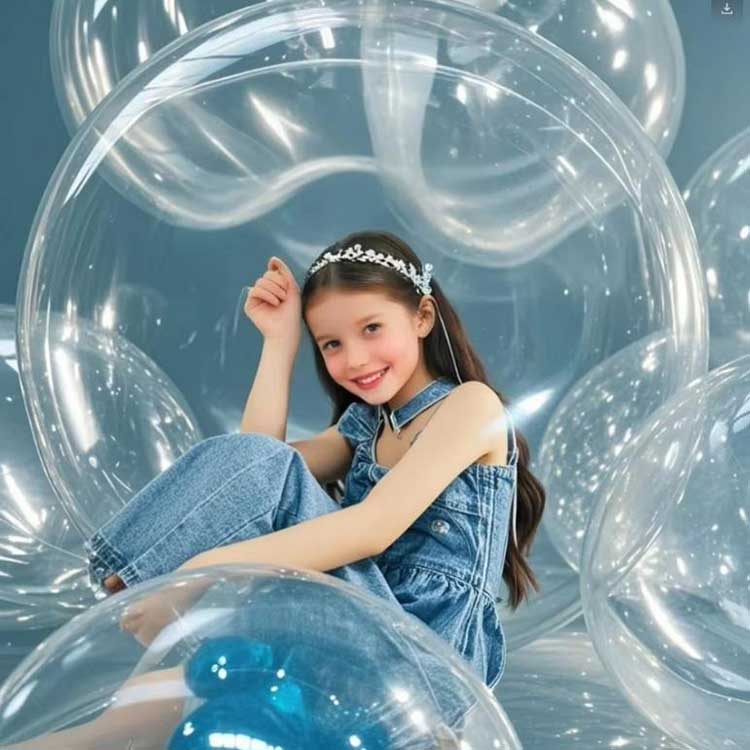 Ови 48-инчни округли прозирни Бобо балони су направљени од ТПУ материјала, нудећи одличну чврстоћу и издржљивост. Након надувавања, површински напон је изузетно уједначен, спречава испупчење и пуцање, а лако подноси мање ударе. Овај балон нема пластични мирис који се налази у обичним балонима. Чак и у затвореним просторима, нема потребе да бринете о питањима животне средине. Транспарентна верзија од 48 инча је на лагеру и спремна је одмах за испоруку. Такође можемо договорити поруџбине од 1000 комада за друге боје. Једноставно затегните заптивку након надувавања; није потребна додатна трака. Балони могу задржати свој пуни облик више од два месеца, смањујући трошкове одржавања током догађаја. Тестирали смо везани балон шест месеци, и остао је нетакнут, што сведочи о његовим врхунским перформансама и да овај производ чини веома цењеним.