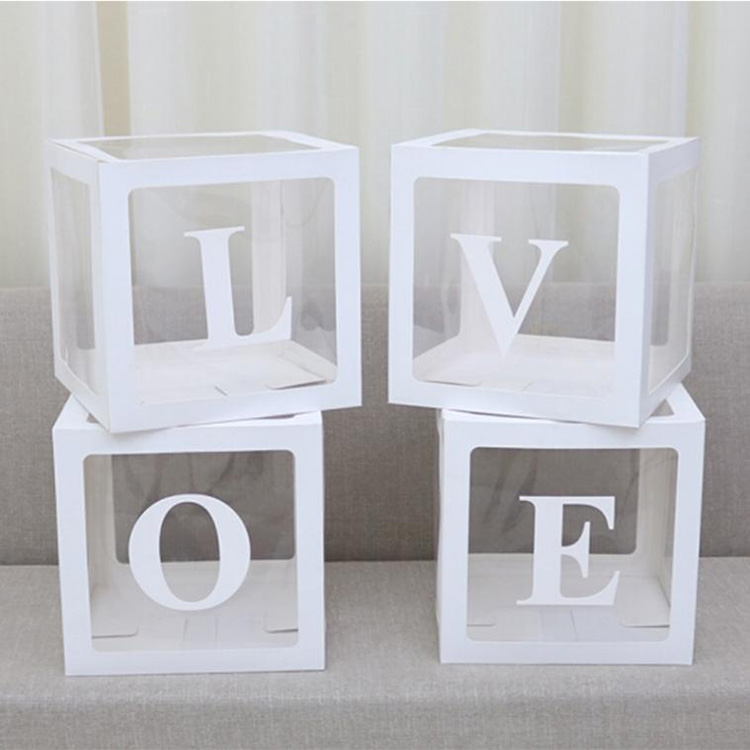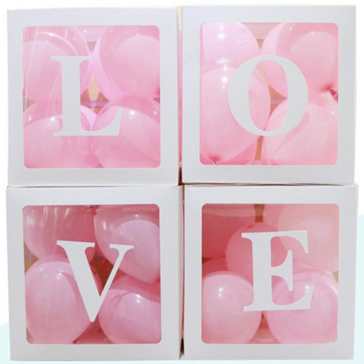 Кутије за туширање за бебе са словима су направљене од еколошки прихватљивог ПВЦ-а и акрила, који је издржљив и лаган. Коцка 30цм*30цм*30цм (величина се може прилагодити) пружа различите боје позадине, долази са белим, златним, сребрним или црним украсима који одговарају било којој теми забаве. Од класичне плаве за дечаке до нежног зеленог за свачију забаву.