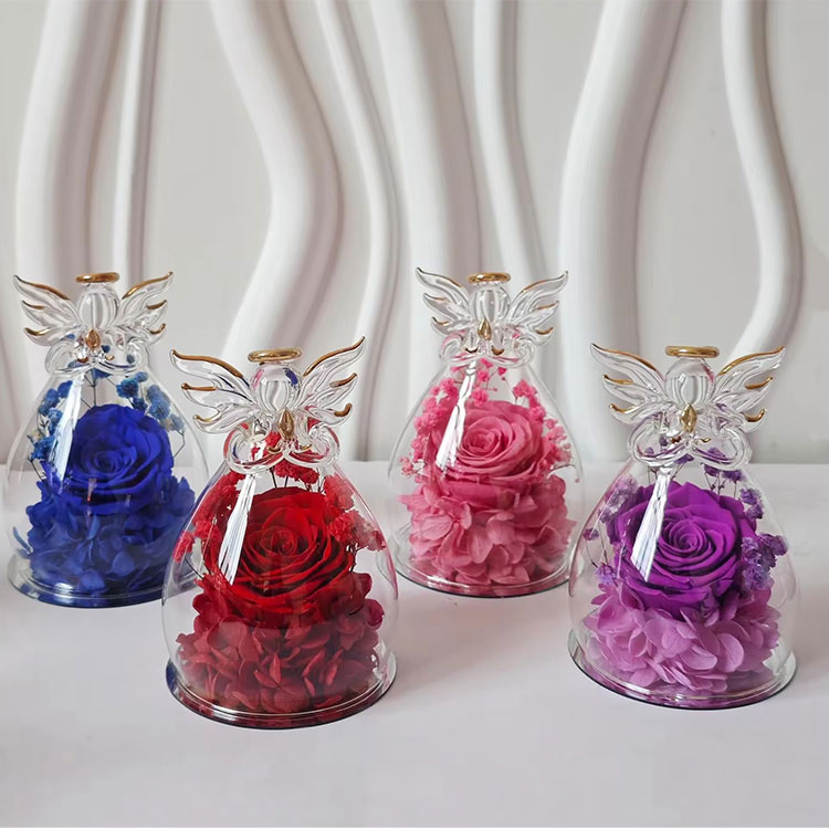Очувано цвеће у нашем стакленом анђелу сачуваног цветног поклона није вештачки синтетизовано, већ је направљено од правог цвећа. Невсхине® има преко 20 година искуства у фабричкој производњи. Из сопствене базе за садњу бирамо висококвалитетно, свеже цвеће и обрађујемо га сложеним и прецизним техникама. Задржава облик и боју правог цвећа, ефикасно спречава цветање од 3 до 5 година. потребно заливање.