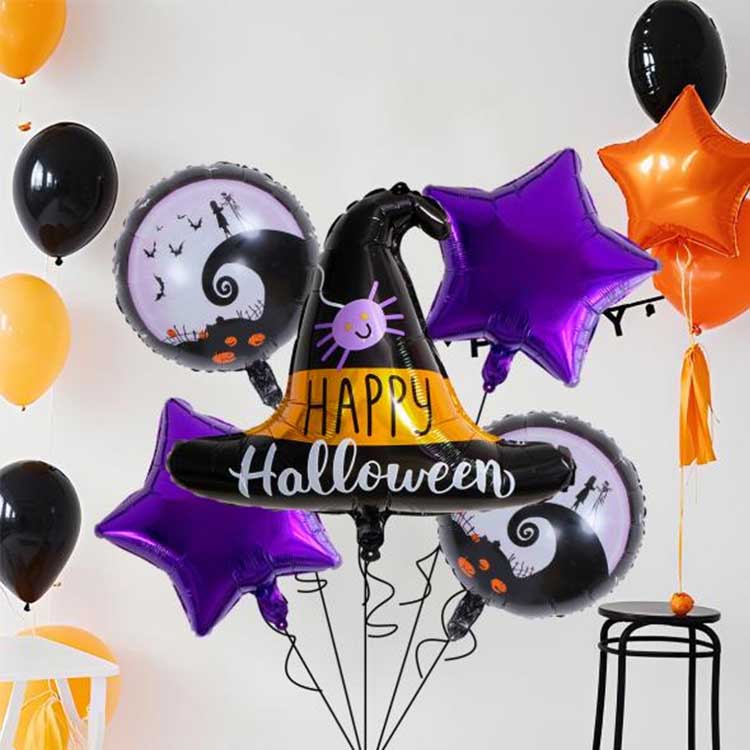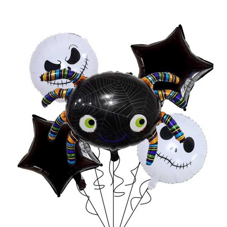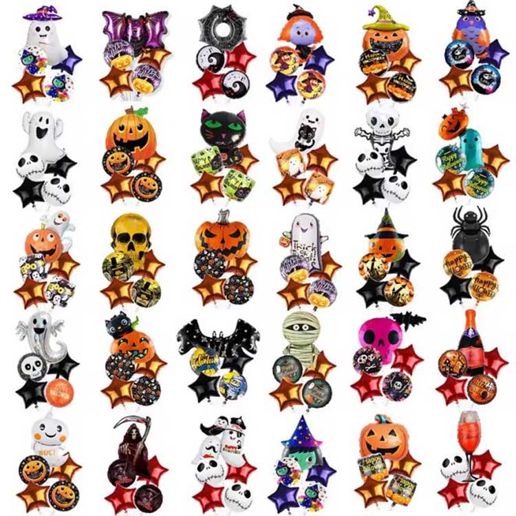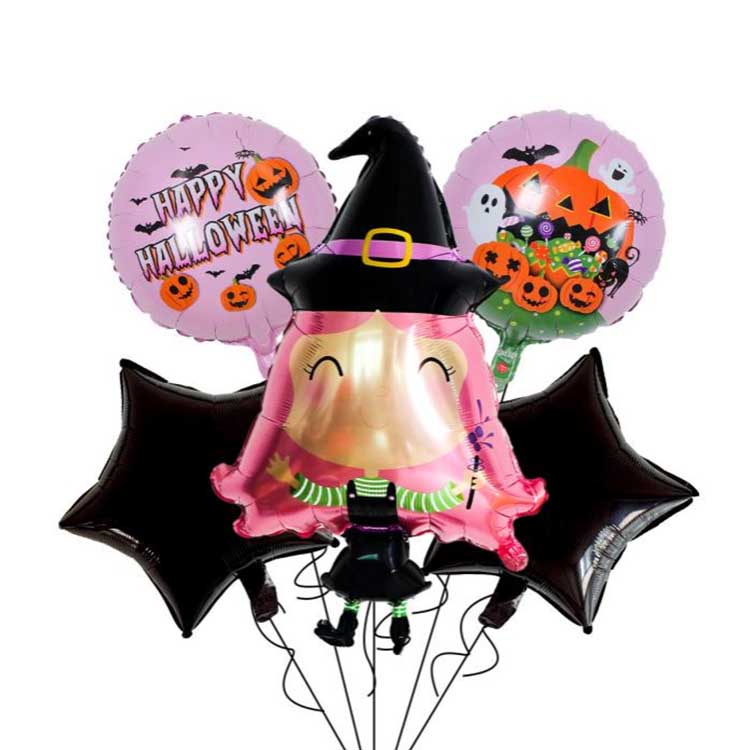 Ноћ вештица пет комада је балон, посебно дизајниран за Ноћ вештица. Обично се састоји од балона фолије, балона са латекс и другим додацима. Укључује пет типова балона укупно! Сваки сет садржи образац или карактер који се савршено подудара са темом Ноћи вештица. Савршено за декорације Ноћи вештица, можете чак и испунити балоне са хелијумом да их натерају да лебде! То заиста интензивира мистериозну атмосферу Ноћи вештица!
