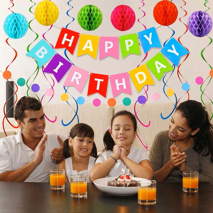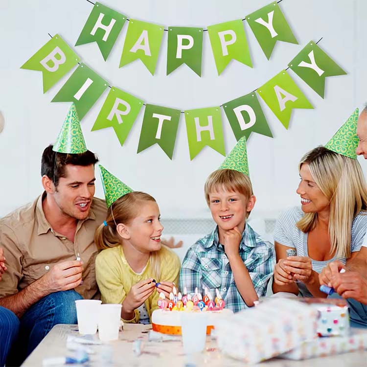 ТхеСрећна застава рођенданаје производ за банер који се користи за украшавање и стварање атмосфере, обично штампане речима "сретан рођендан" или персонализовани садржај. Има много дизајна, укључујући различите теме као што су сезона дипломирања, мајчин дан, дан оца и месец дана. Застава се такође приближава различитим језицима, као што су шпански и енглески. То може побољшати атмосферу и украсити странку.