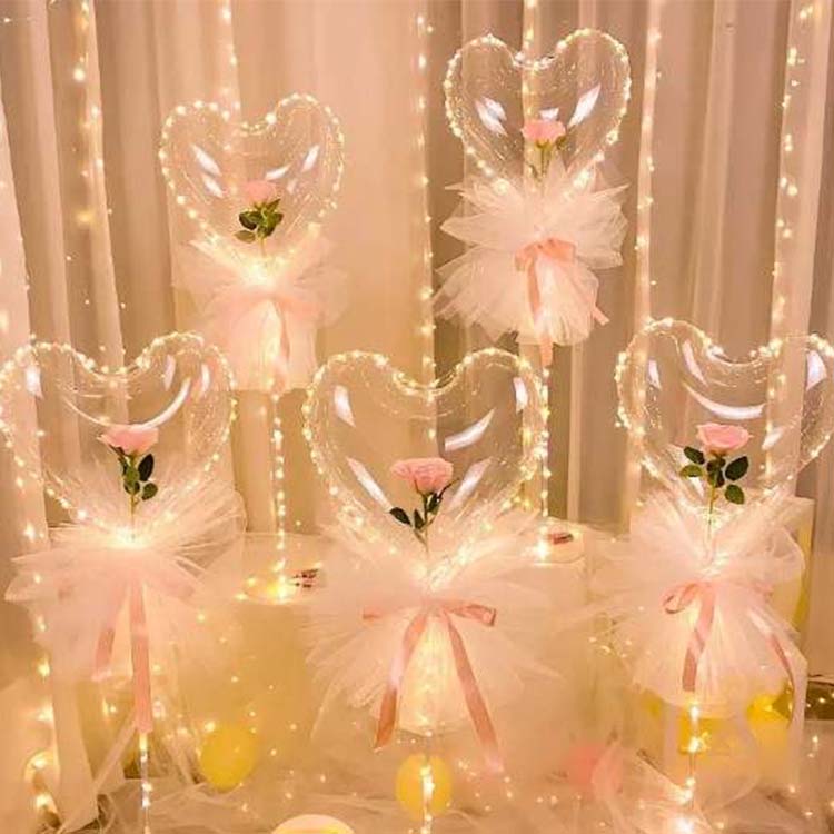 Бобо балони у облику срца у облику срца: Бобо балони у облику срца у облику срцаСкуп у облику срца Бобо ружеОбично направљен од ПВЦ провидног материјала, са добру еластичност и високу транспарентност. Облик је стандардни облик срца, величина је углавном око 20 инча, лопта је релативно велика, облик је леп и може привући пажњу људи.