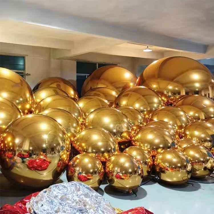 Направљене од висококвалитетне ПВЦ тканине са огледалом, ове лопте на надувавање су и чврсте и визуелно упечатљиве. Двослојна конструкција повећава њихову отпорност, погодна за унутрашњу и спољашњу употребу. Дизајниран да буде водоотпоран, отпоран на сунце, отпоран на ветар и временске прилике, одржава свој сјај и структуру чак и под изазовним условима, нудећи поузданост догађај за догађајем.