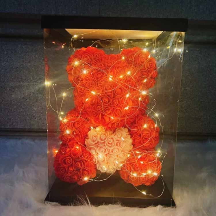 Сачувани медвед ружа је направљен од имитација правих ружа. Након посебног третмана, он враћа природну боју и текстуру цвећа и има дужи рок трајања.