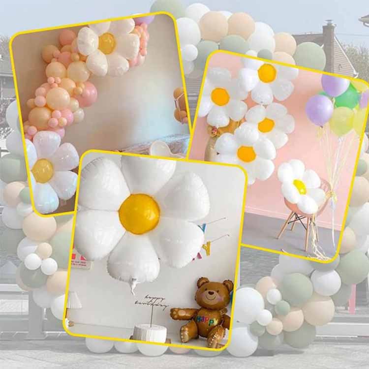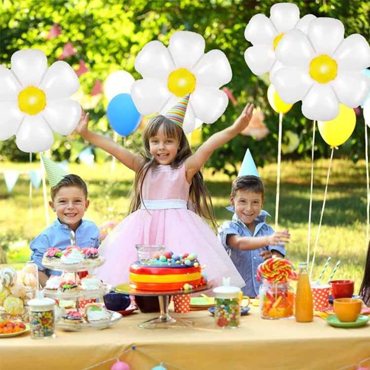 Рођенданска странка: Било да је то рођендан за децу или одрасле, балони са шест петалних даиси фолије могу донети срећну и топлу атмосферу на забаву. Плафон, зидови, трпезаријски сто и друга места на странци на странци такође могу да направе балоне у лукове балона, балонске ступце и друге облике или нека деца фотографишу балонима.