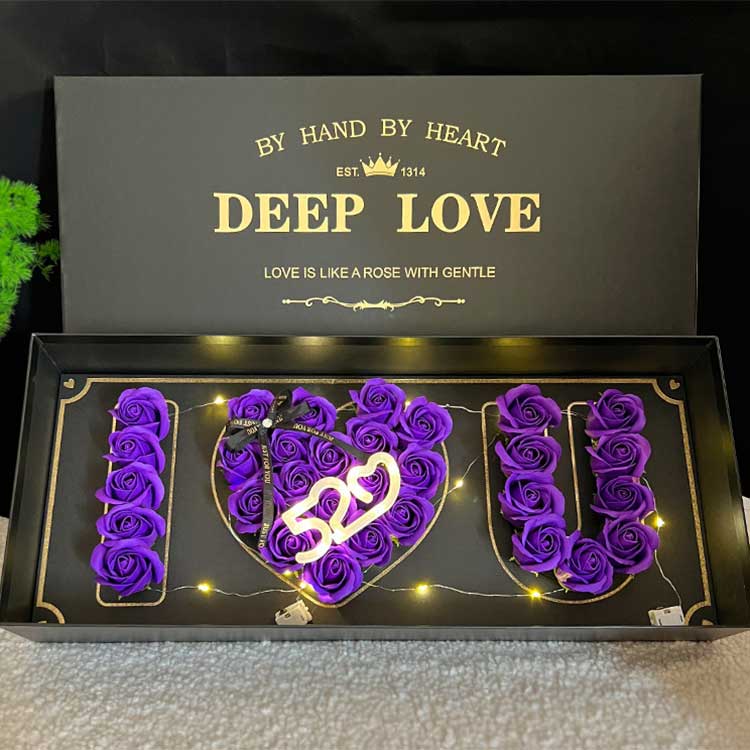 Цветна кутија са сапунском ружом има димензије 61цм*26цм*10цм. Ова величина може у потпуности да прими довољан број цветова сапуна, стварајући изузетан визуелни ефекат, а истовремено олакшава накнадно складиштење и транспорт. Било за личну куповину као поклон или за корпоративну масовну куповину као поклон, лако може задовољити потребе и за личну и за корпоративну употребу.