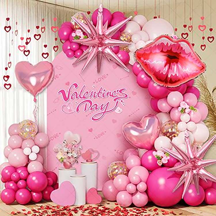 Комплет венаца балона за Дан заљубљених укључује еколошки прихватљиве латекс балоне и живописне балоне од фолије дизајниране за продужену употребу. Садржи 50-80 балона од латекса различитих величина, плус 5-8 украса у облику срца/слова од фолије. Комплет „уради сам“ састоји се од ланчића од балона, лепљивих тачака, траке и упутства. Једноставан за састављање за унутрашњу и спољашњу употребу.