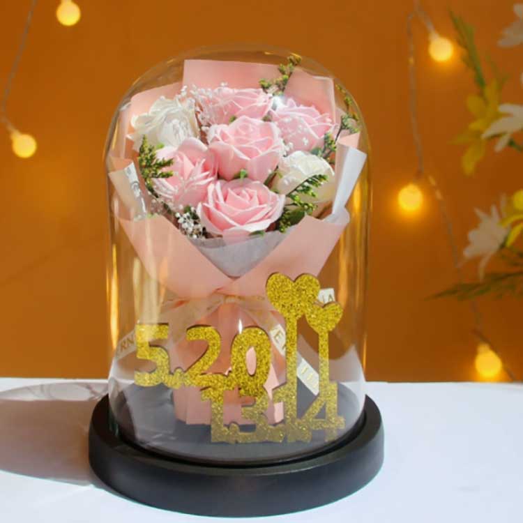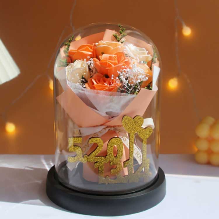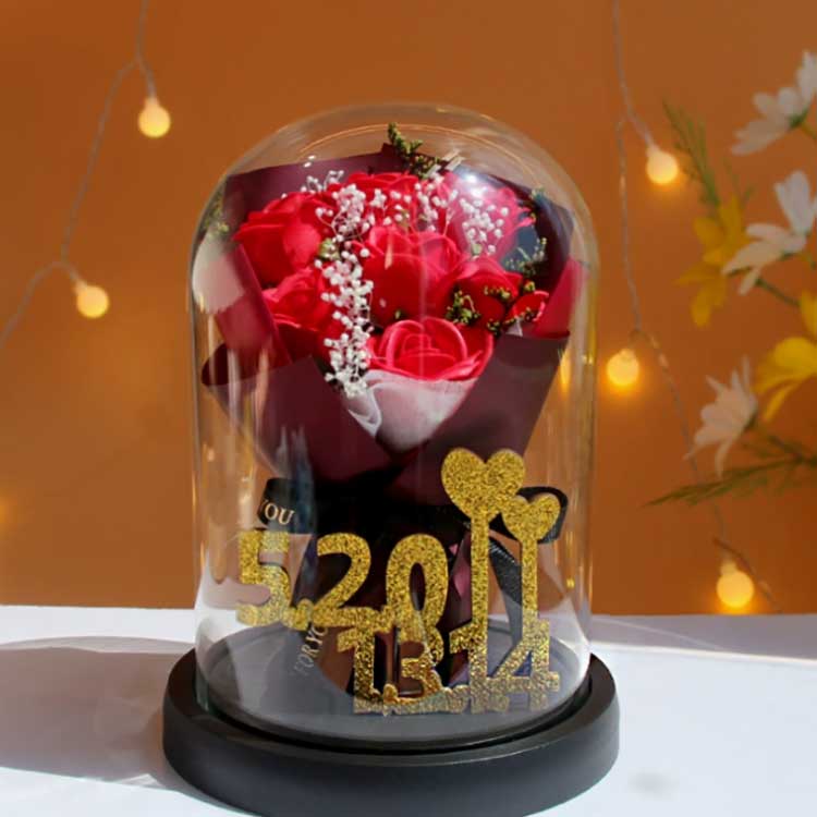 Овај букет стаклених ружа је дизајниран да спречи да цвеће увене, а руже изнутра неће избледети. Букет је веома реалистичан, готово се разликује од правог цвећа, и може одлично да представи лепоту букета. У унутрашњости су златни бројеви 520+1314 представљају бројеве 520 и 1314, симболизујући љубав и наглашавајући промишљеност овог поклона.